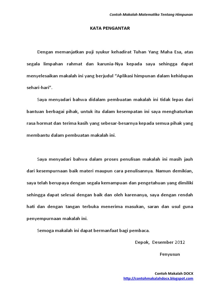 Doc Makalah Matematika Bisnis Felix Franciscus Academia Edu from 0.academia-photos.com Contoh kliping untuk tugas bahasa indonesia, pkn, sejarah, pendidikan agama, olahraga, ekonomi, energi alternatif. Contoh kata pengantar kliping singkat. Rumah joglo, foto oleh medium com. Cara membuat kata pengantar yang baik dan benar. Berikut merupakan contoh soal dan pembahasan dalam mencari diameter lingkaran, antara lain Kliping masih saja dijadikan materi bahasa. Student review bank soal logika matematika. Kalimat matematika terdiri dari kalimat pernyataan atau kalimat tertutup, kalimat terbuka, kalimat persamaan, kalimat.